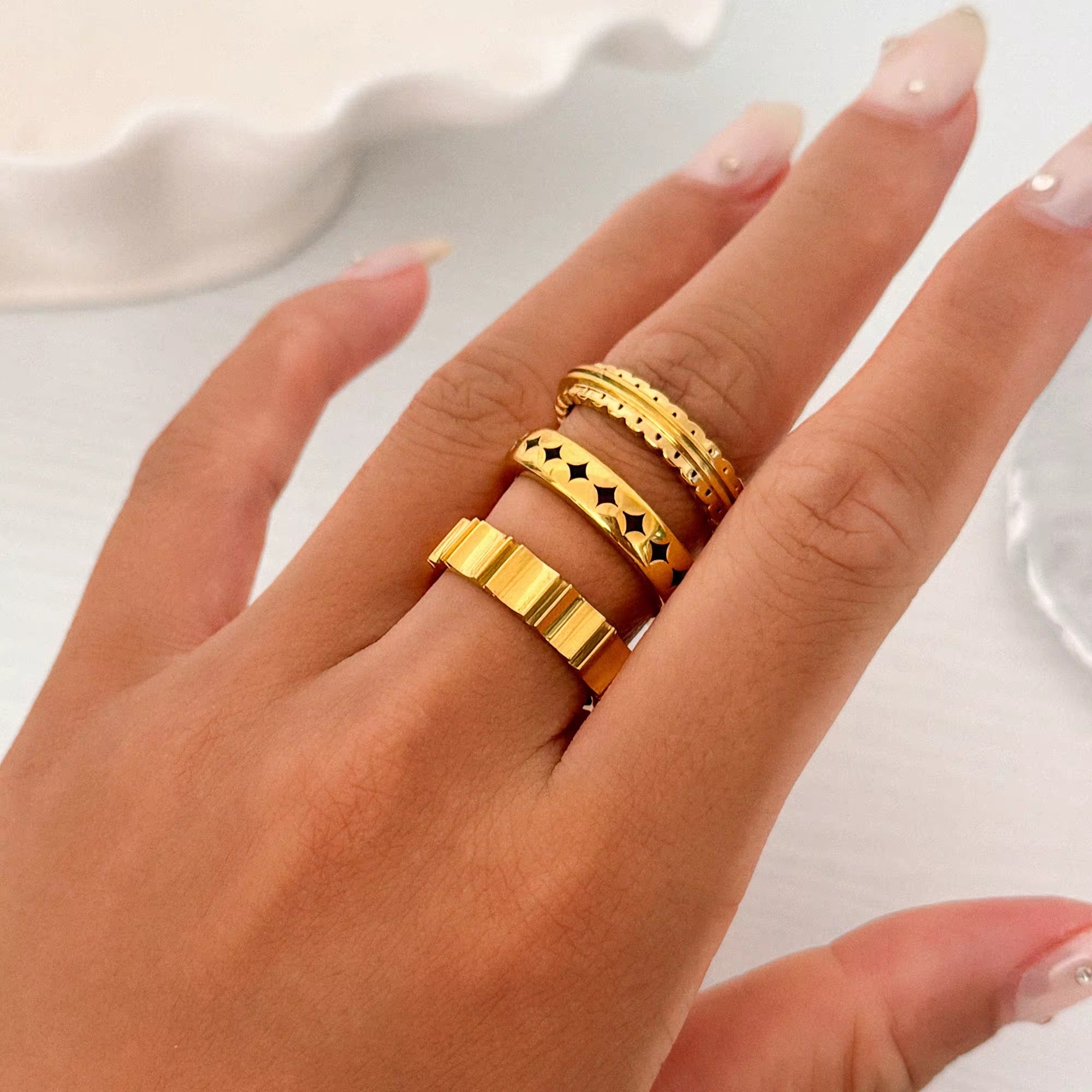 Whether worn solo for a minimalist look or stacked with your favorite rings for a bolder style, this piece effortlessly elevates any outfit. Pair it with neutral tones, layered bracelets, or a chic manicure to let the star details truly stand out.